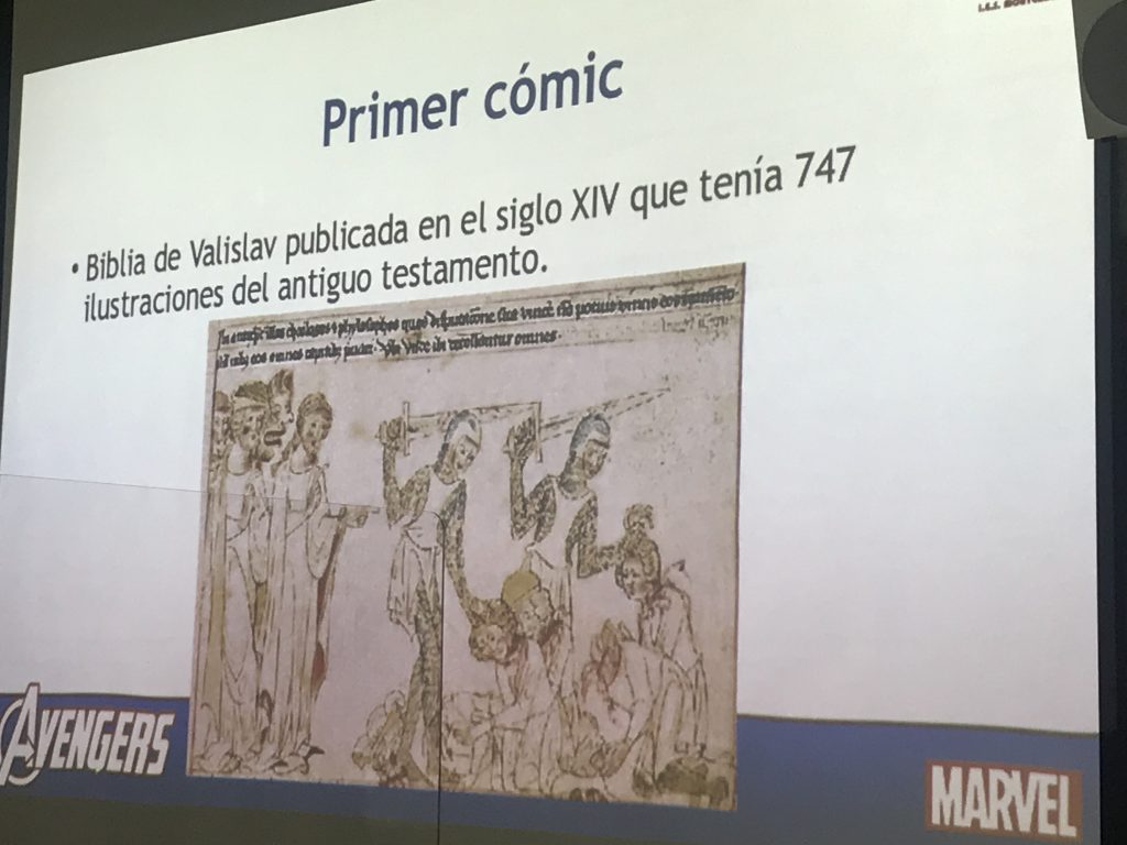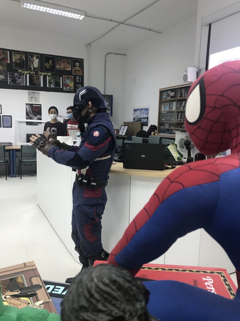 El mes del Enero es el «mes del Cómic» en nuestra biblioteca. Dentro de las actividades organizadas hemos tenido la suerte de contar con el Capitán América que ha dado una charla a los alumnos de 1ºESO I sobre el origen del cómic. Al «Capi» le han acompañado dos grandes expertos en manga, tenemos la suerte de que son alumnos de 1º bachillerato A.