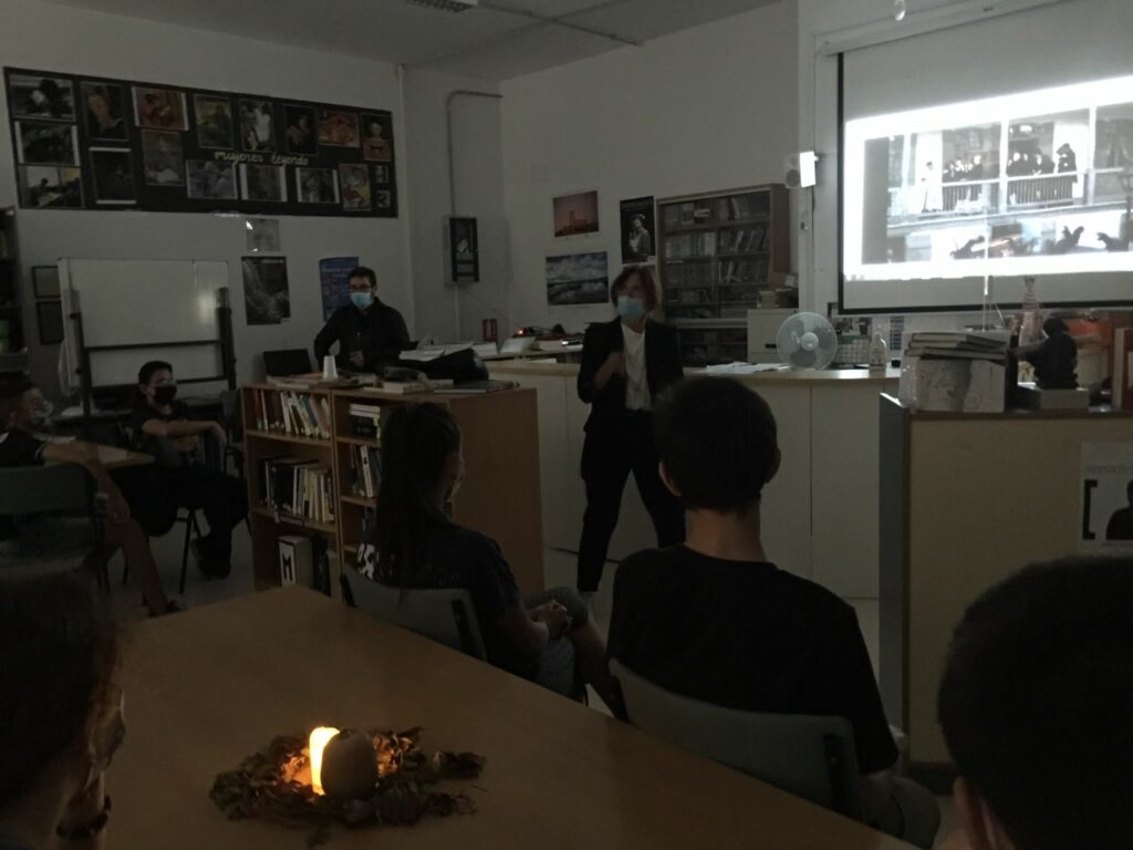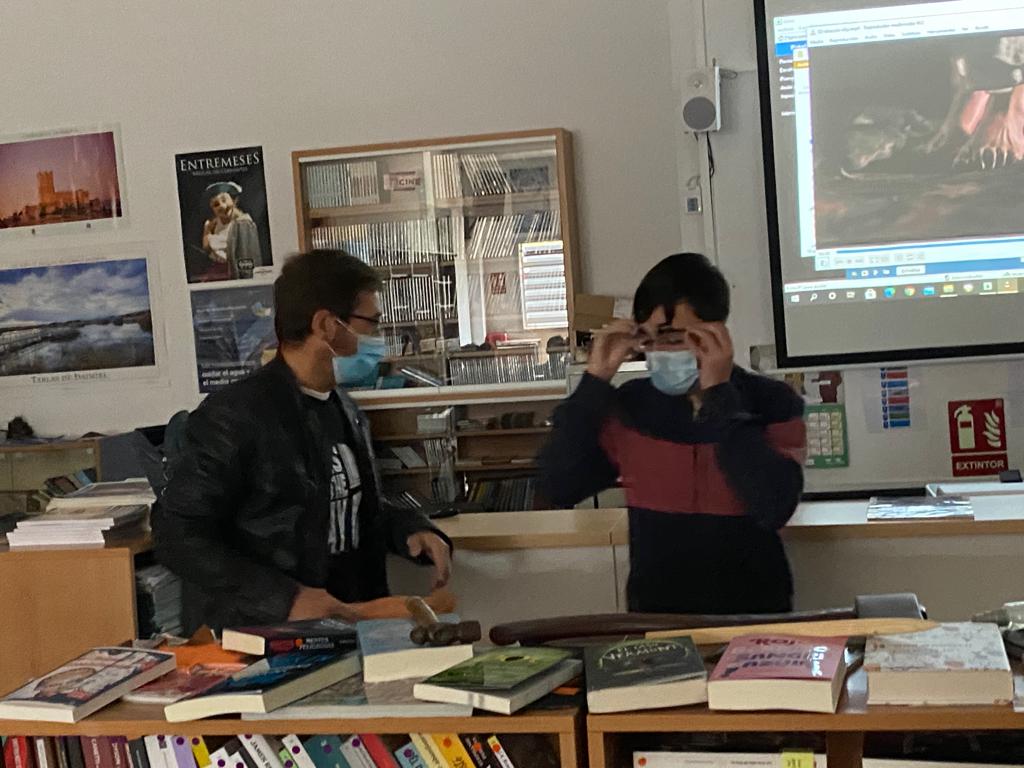Estas sesiones, en las que se han proyectado varios cortos terroríficos, han sido amenizadas además con las caracterizaciones y recreaciones teatrales de clásicos de terror realizadas por los profesores D. José Luis Usero y Dña. María del Mar Berlanga.