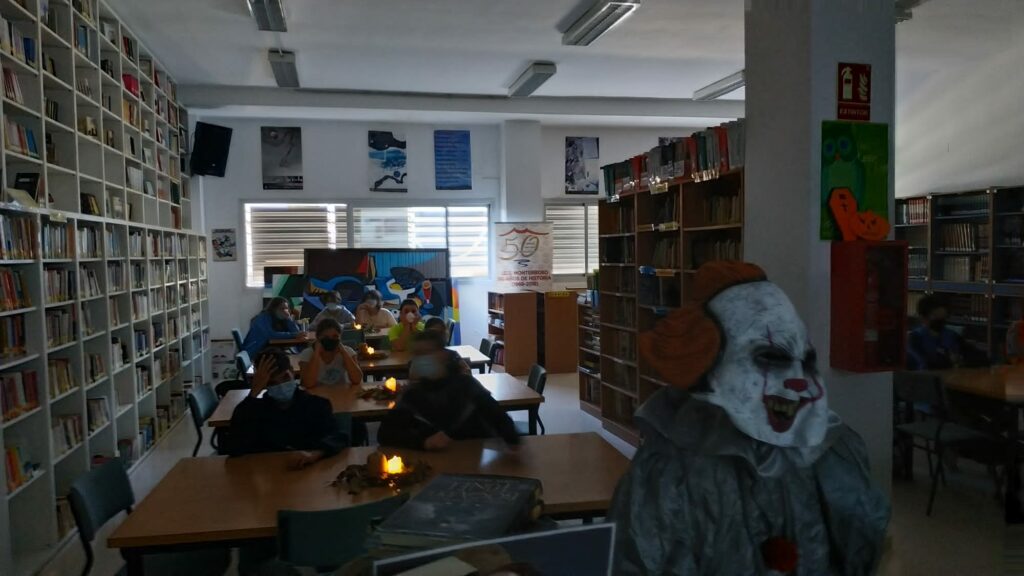 Con motivo de la celebración del Mes del Terror y la fiesta de Halloween, la Biblioteca del IES Monterroso ha organziado una serie de actividades encaminadas a fomentar la lectura del género de terror entre nuestro alumnado. Una de estas actividades ha sido el «Cine de terror» que ha tenido lugar durante los recreos de los días 28, 29 y 30 de octubre en la biblioteca del centro, y en la que han participado más de 60 alumnos y alumnas de 1°y 2° de ESO.
