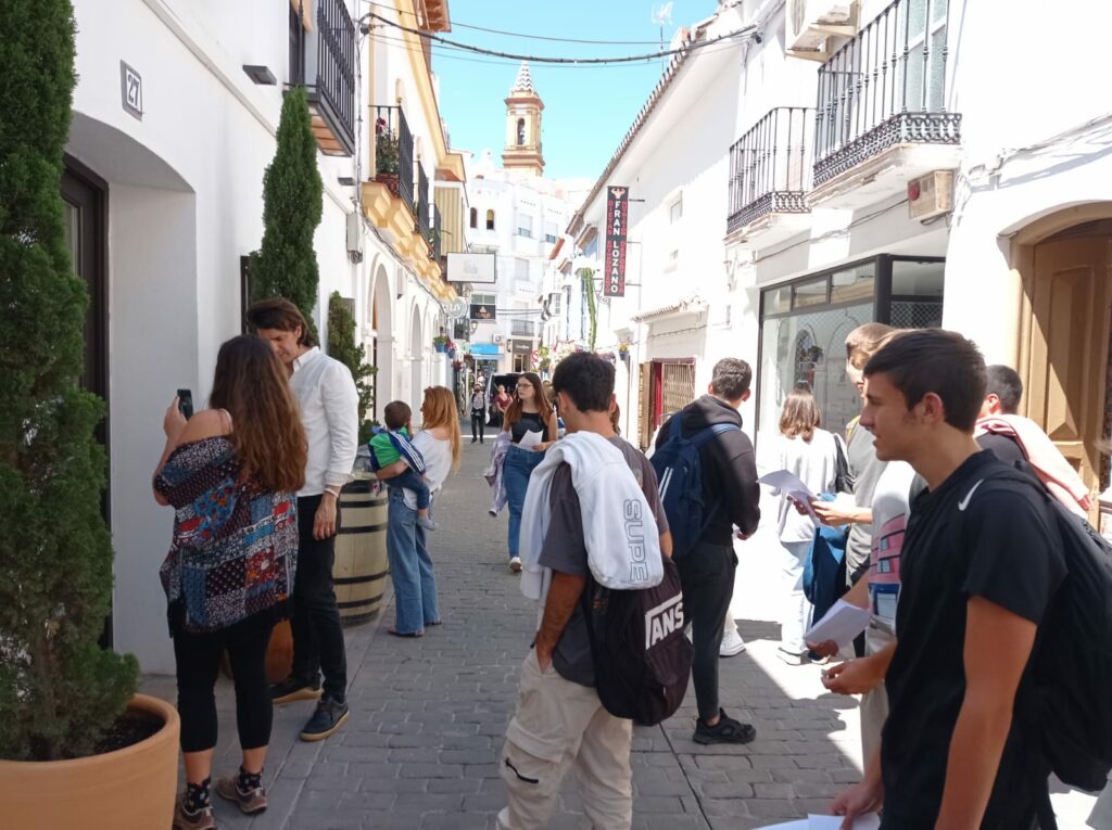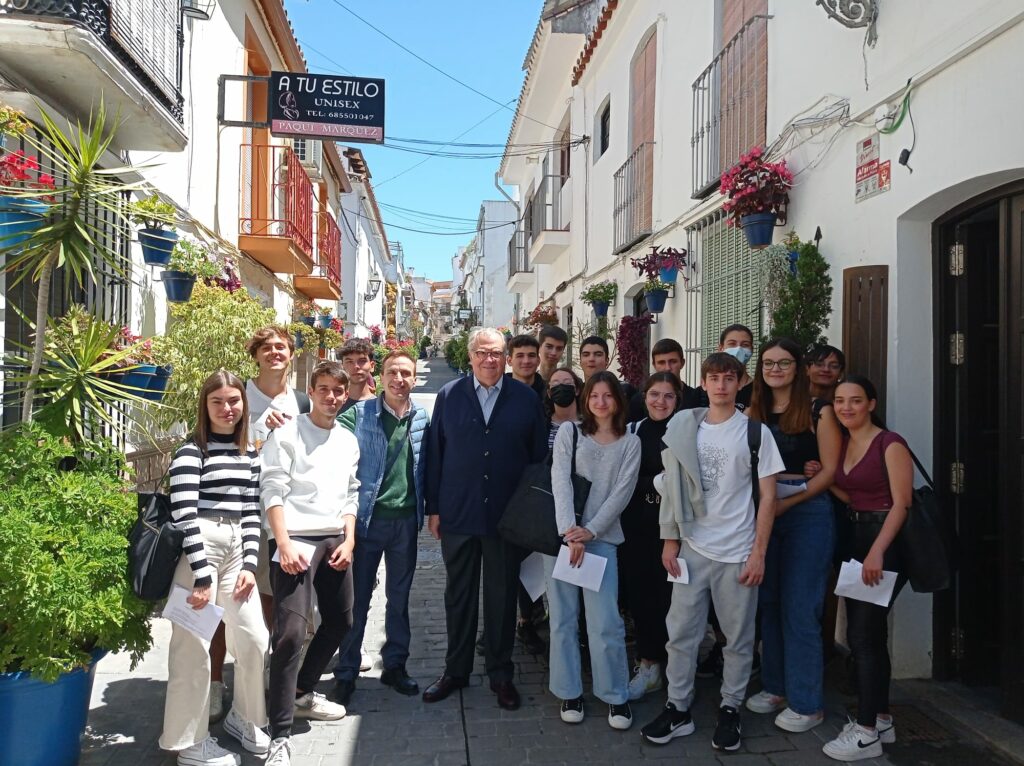 Hoy 5 de mayo, en la Galería Huber, se ha celebrado la actividad cultural denominada Vermú poético, en el contexto del Día de la Poesía en Estepona, el alumnado de 1° Bach. F del I.E.S. Monterroso ha asistido al recital poético de dos grandes escritores de la literatura contemporánea española en el género lírico: Jaime Siles y Lara Moreno. Tras la lectura, el alumnado de nuestro centro siguió experimentando las ideas formalizadas en los textos líricos de autores del Siglo de Oro a través del itinerario diseñado por su profesor de Lengua y Literatura por las calles de Estepona.