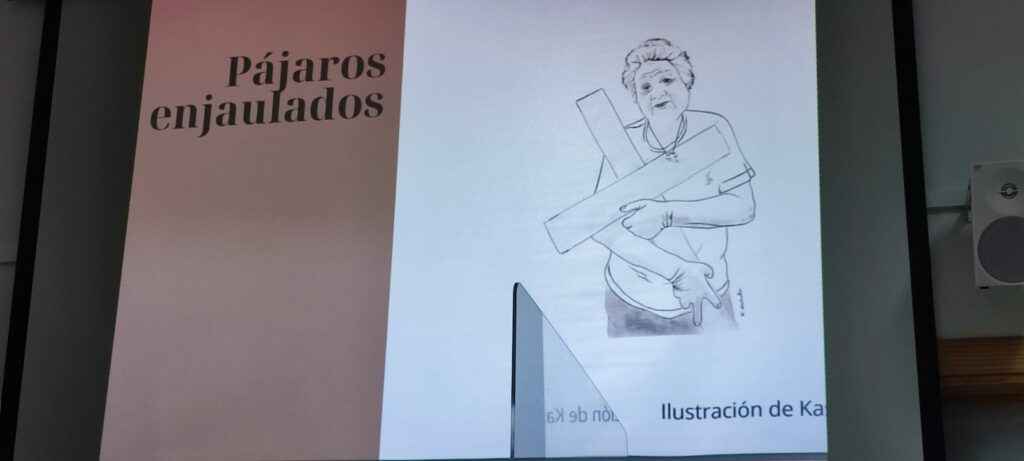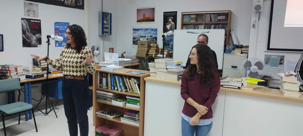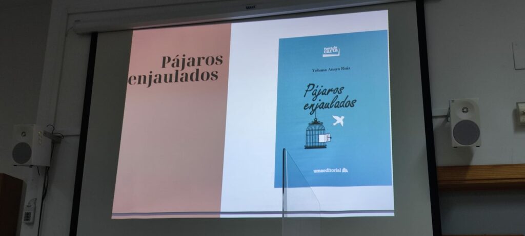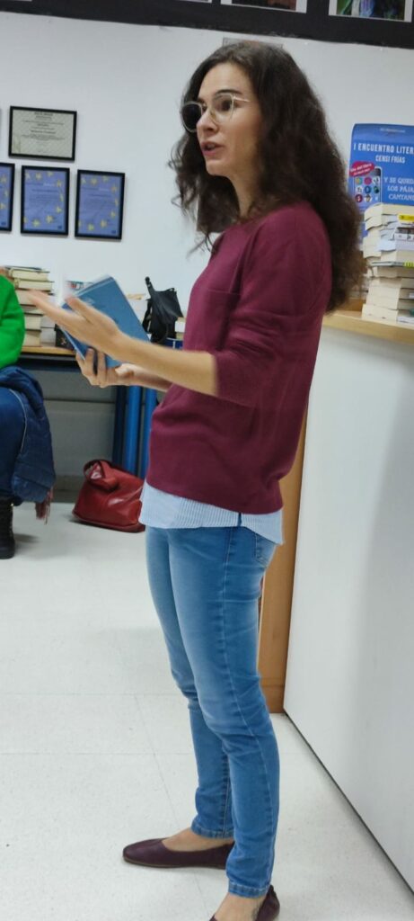 Rodeada de nuestros alumnos de 3° y 4° de ESO, Yohana ha hecho un recorrido de sus experiencias y obras literarias y hemos disfrutado con la lectura de algunos pasajes de su última obra, Pájaros enjaulados. Esta trata sobre varias historias reales de mujeres hondureñas que han sufrido maltrato. Todo lo recaudado con esta obra se dona íntegramente para la ONG que trabaja para el desarrollo de las mujeres en este país. https://acoes.org/