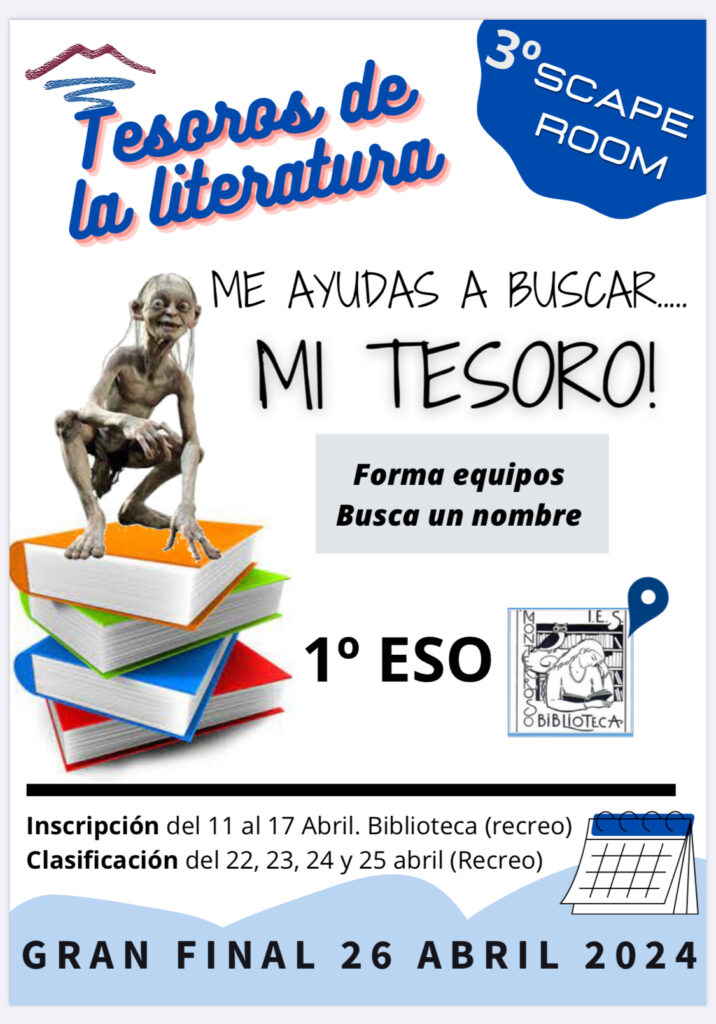 Comienzan los preparativos de nuestra semana cultural. Con ella viene la tercera edición del scape room ”Tesoros de la literatura” Te apuntas?