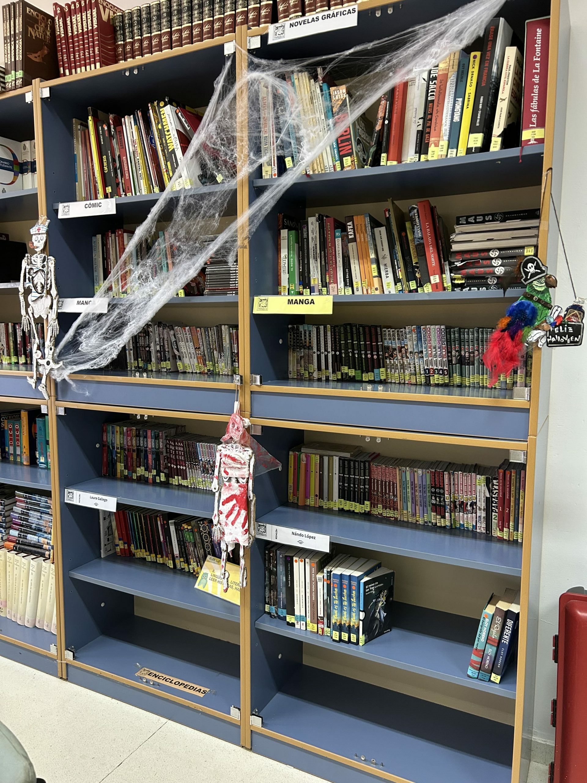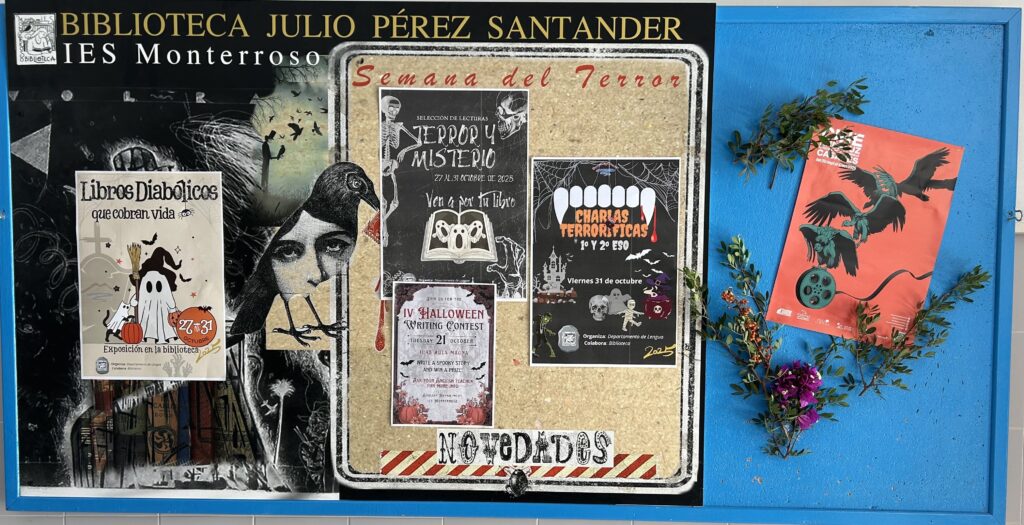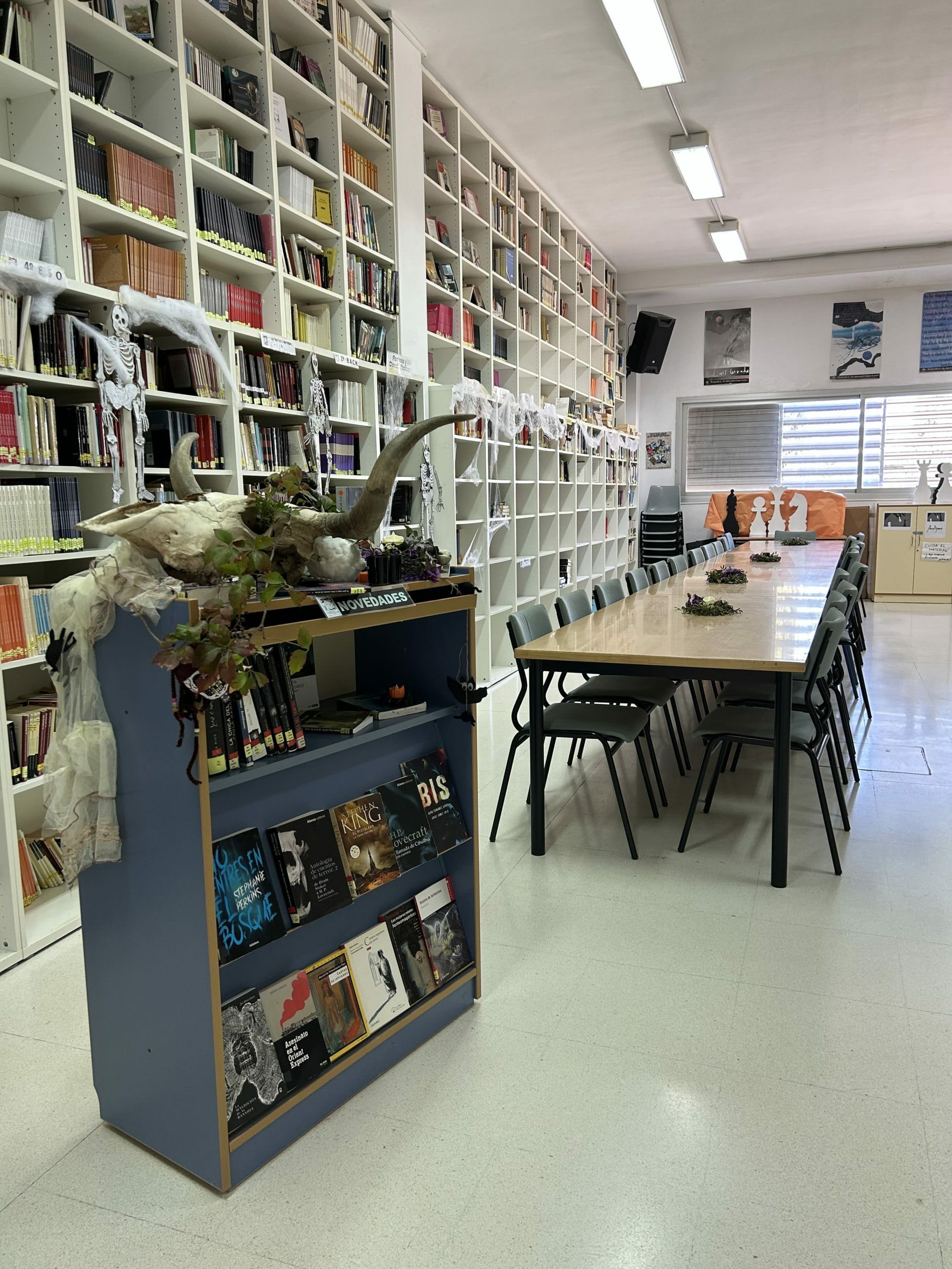Nuestra biblioteca se prepara como cada año para las actividades en la semana de Halloween. Por una lado somos tradicionales en nuestra decoración pero por otro tratamos de sorprenderte:
