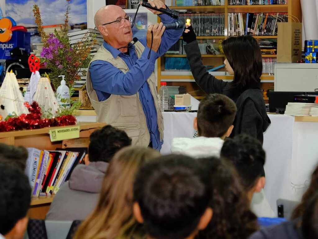 Charla a 3 clases de 1 de secundaria, desde Grunsber, la divulgaciónde los valores de Sierra Bermeja, en este caso, como observatorio astronómico. Como tema, la astronomía y la necesidad de personal cualificado en observatorios astronómicos, física, matemáticas, astrobiología, heliofisica y una larga lista de materias que para una investigación, podrían ser necesarios. Atentos, curiosos, pregúntones, han podido tocar dos meteoritos y ver desde mi mano, dos láminas de meteoritos uno de nuestra Luna y otro del planeta Marte. He tenido a un grupito que prometen algo diferente al resto.
